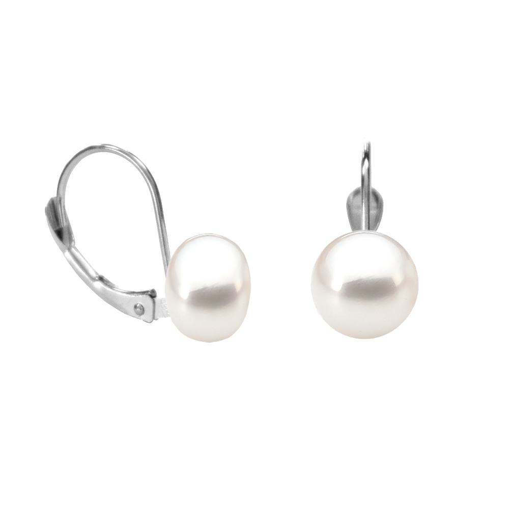• Ένα φανταστικό ζευγάρι σκουλαρίκια με 2 εντυπωσιακά λευκά μαργαριτάρια Fresh Water Pearl διαμέτρου 8.5-9  χιλιοστών.