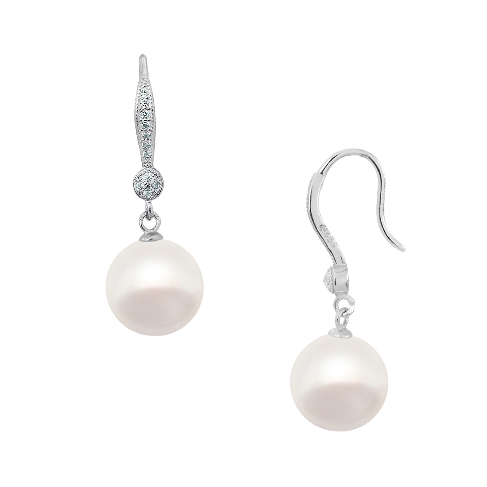 Σκουλαρίκια με λευκά μαργαριτάρια και ζιργκόν σε 925 βάση - S124313W