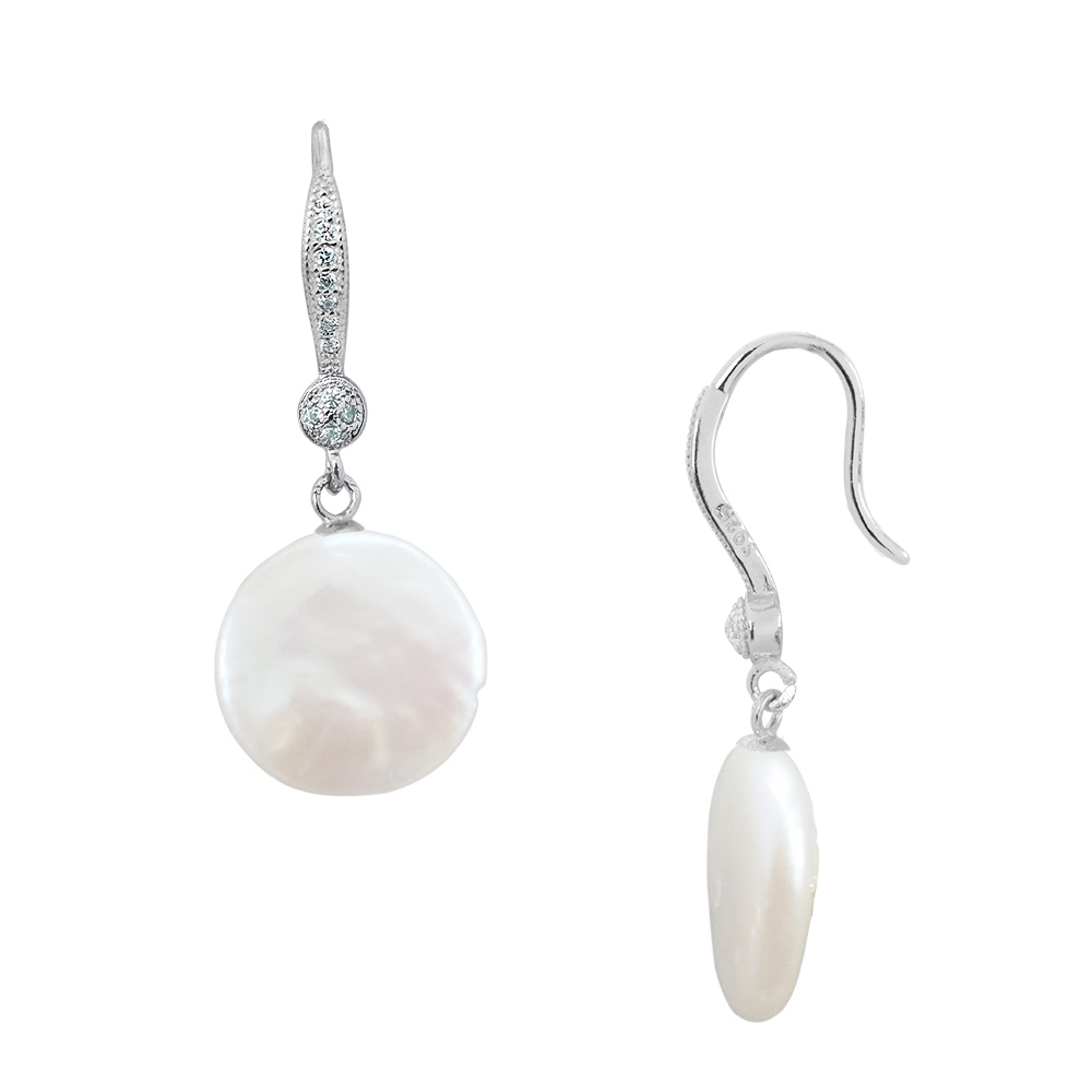 Σκουλαρίκια με λευκά μαργαριτάρια και ζιργκόν σε 925 βάση - S124313K