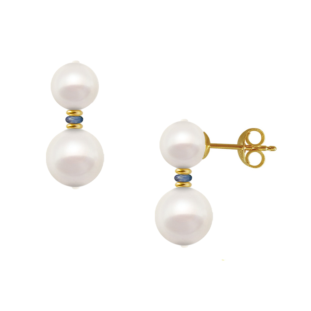 Σκουλαρίκια Κ14 χρυσά με λευκά μαργαριτάρια και ζαφείρια - F124516S