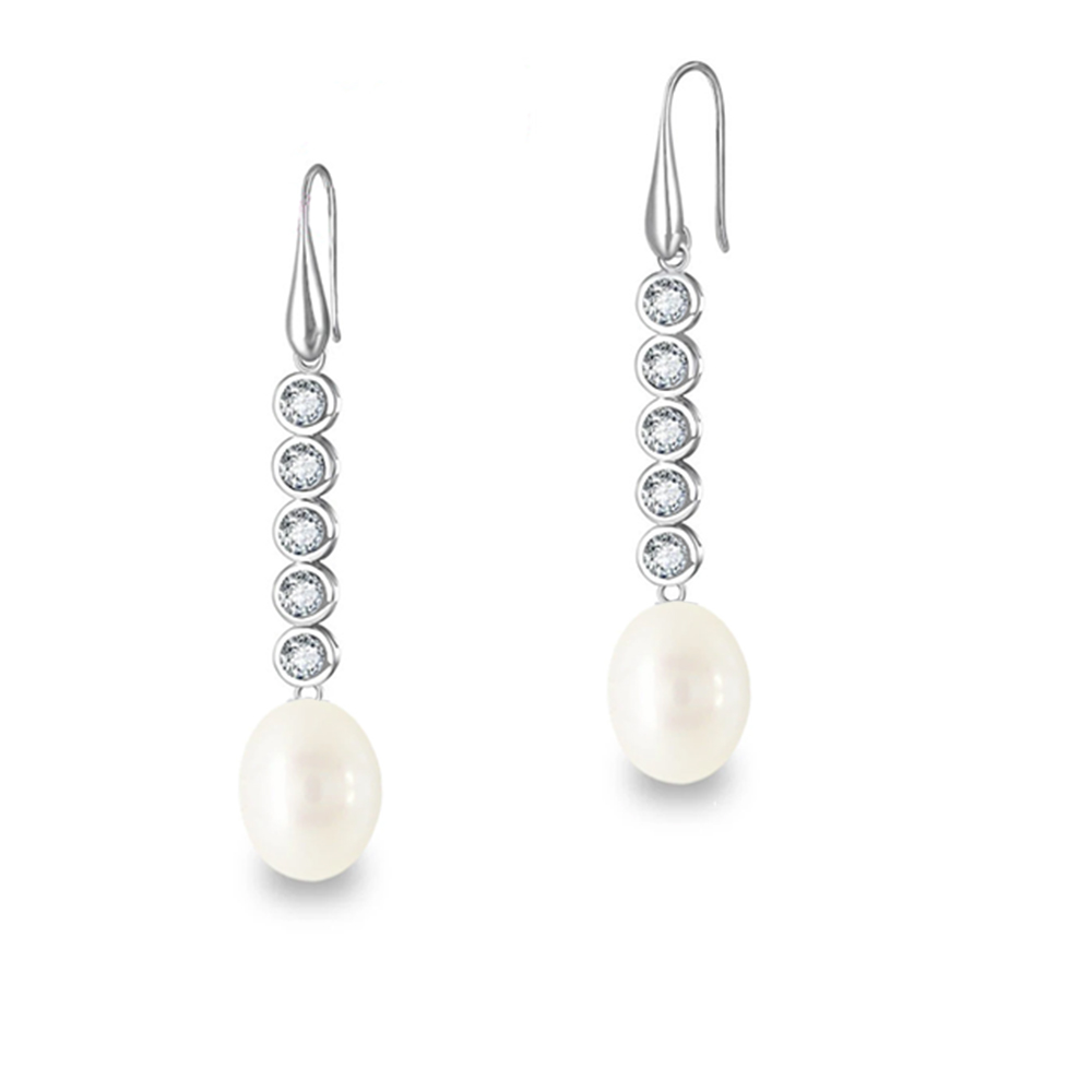 • Ένα υπέροχο ζευγάρι κρεμαστά σκουλαρίκια με λευκά μαργαριτάρια Fresh Water Pearl διαμέτρου 9 x 11 χιλιοστών σε σχήμα Long.