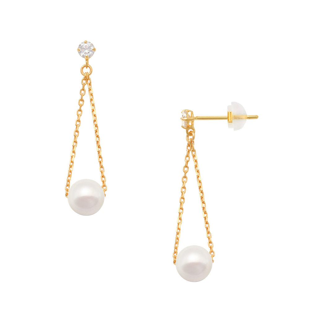 Σκουλαρίκια Κ14 χρυσά με αλυσίδα και λευκά μαργαριτάρια- G125352