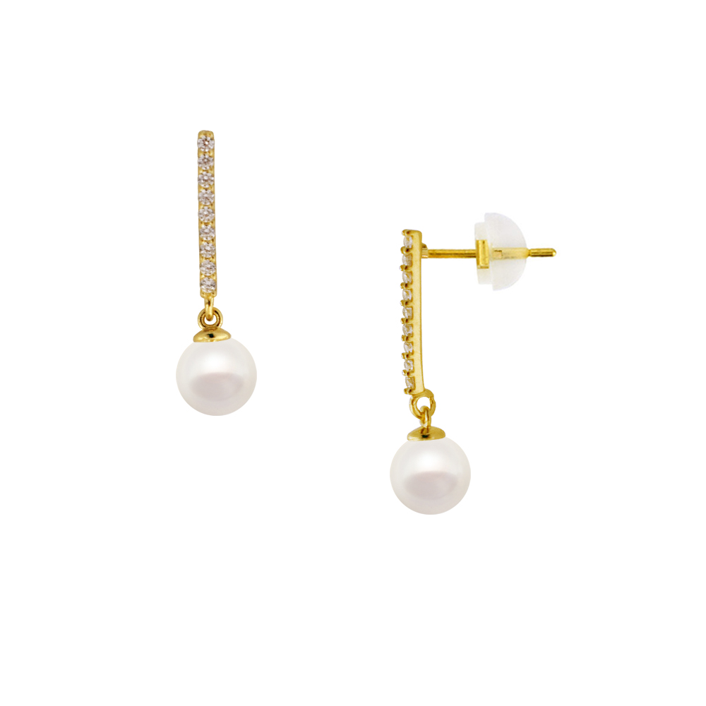 Σκουλαρίκια σε Κ14 χρυσή βάση με λευκά μαργαριτάρια και ζιργκόν - M123823