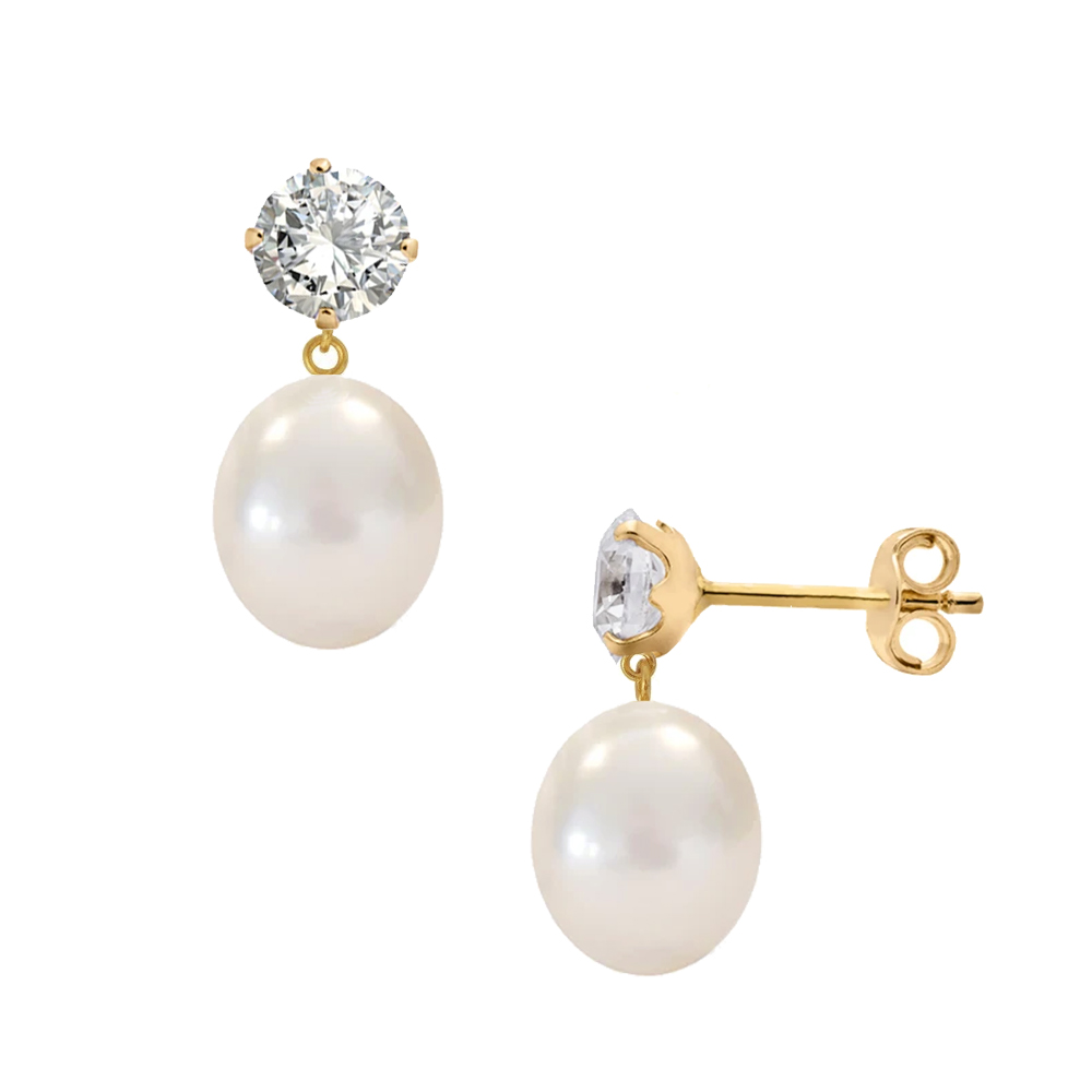 -20% Σκουλαρίκια Κ14 χρυσά με λευκά μαργαριτάρια και ζιργκόν - S125203