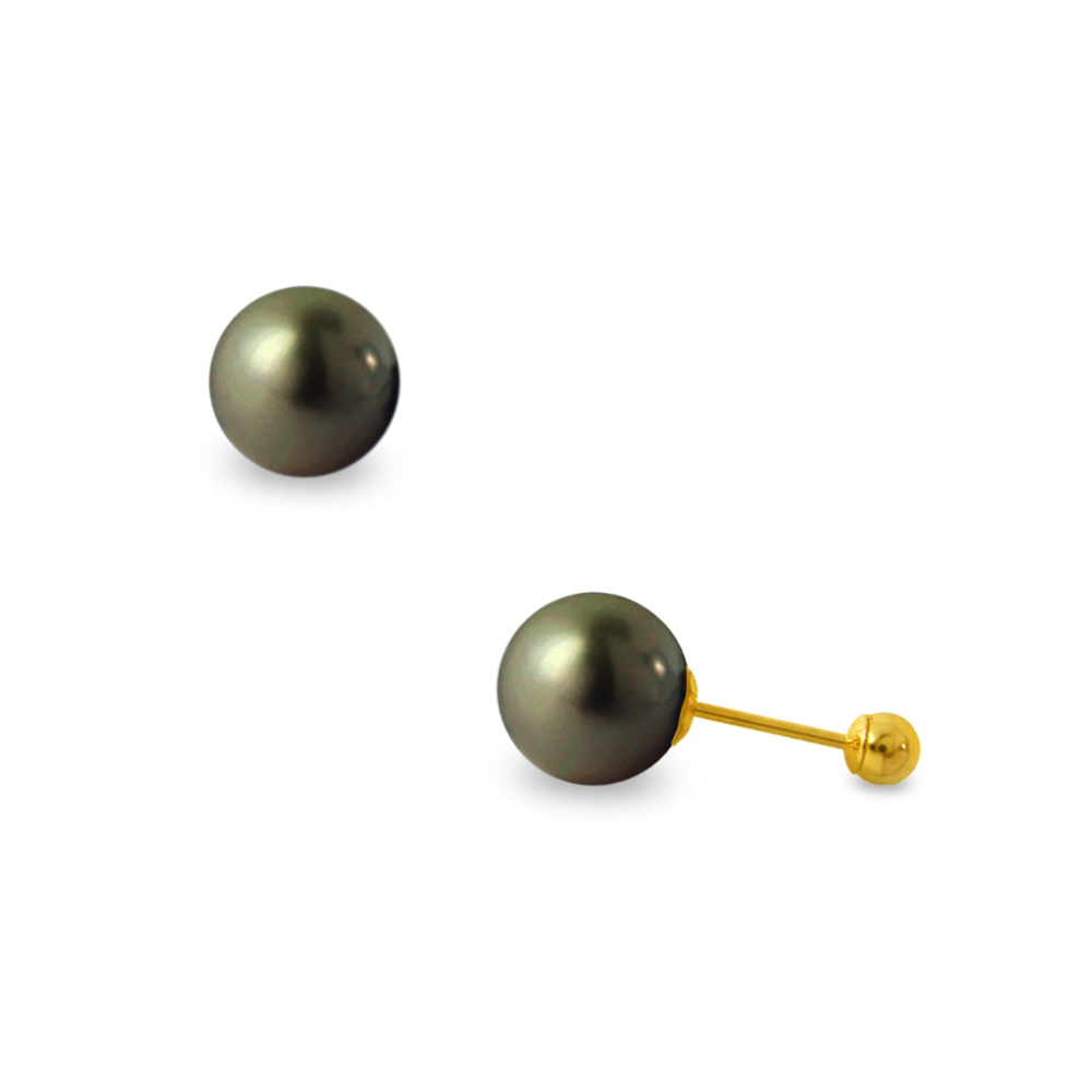 • Ένα υπέροχο ζευγάρι σκουλαρίκια με μαύρα ολοστρόγγυλα μαργαριτάρια QTV Akoya Pearl άριστης ποιότητας σε σχήμα Round (στρογγυλά), διαμέτρου 7,5 - 8 χιλιοστών.