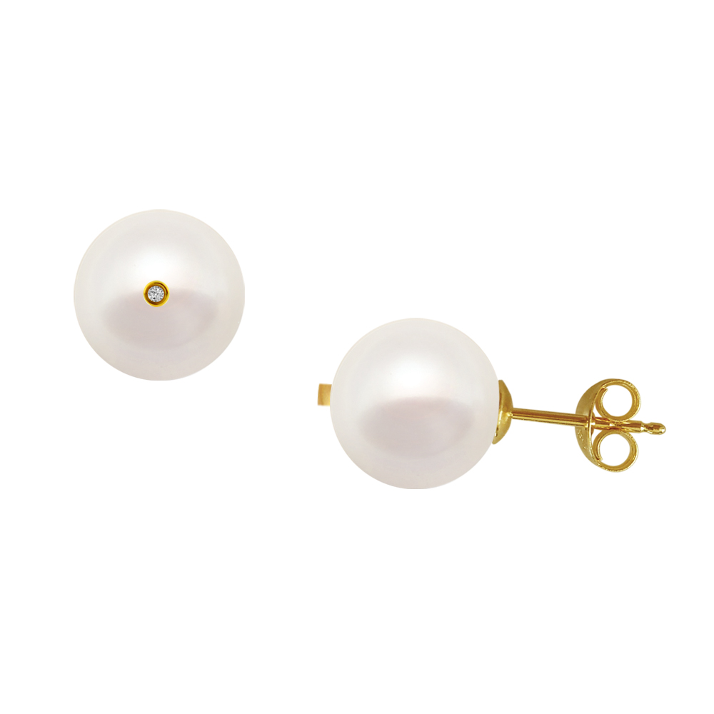 • Ένα υπέροχο ζευγάρι σκουλαρίκια με λευκά μαργαριτάρια Fresh Water Pearl, άριστης ποιότητας σε σχήμα Round (στρογγυλά), διαμέτρου 10 - 11 χιλιοστών σε χρυσή βάση 18 καρατίων.