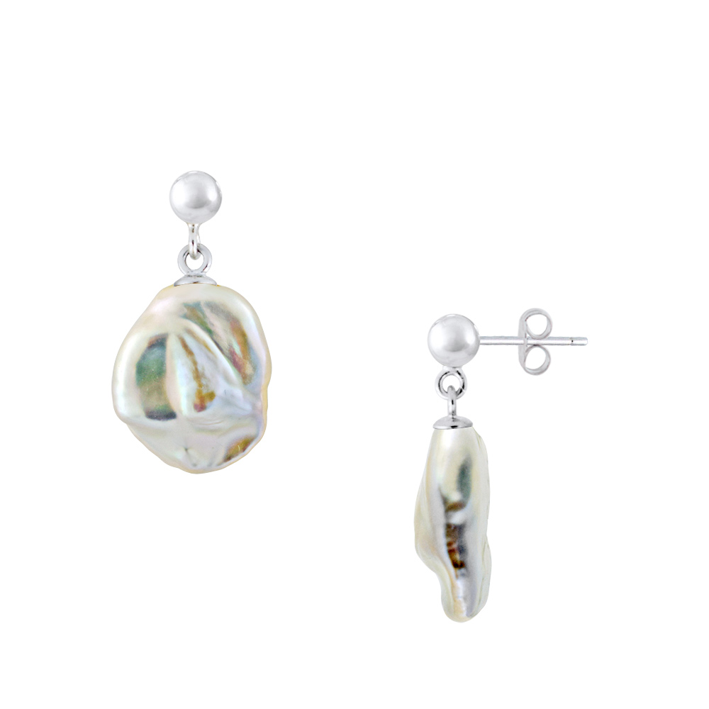 • Ένα υπέροχο ζευγάρι κρεμαστά σκουλαρίκια με λευκά μαργαριτάρια Biwa Fresh Water Pearl, άριστης ποιότητας σε σχήμα Baroque, διαμέτρου 12,5 x 14 χιλιοστών.