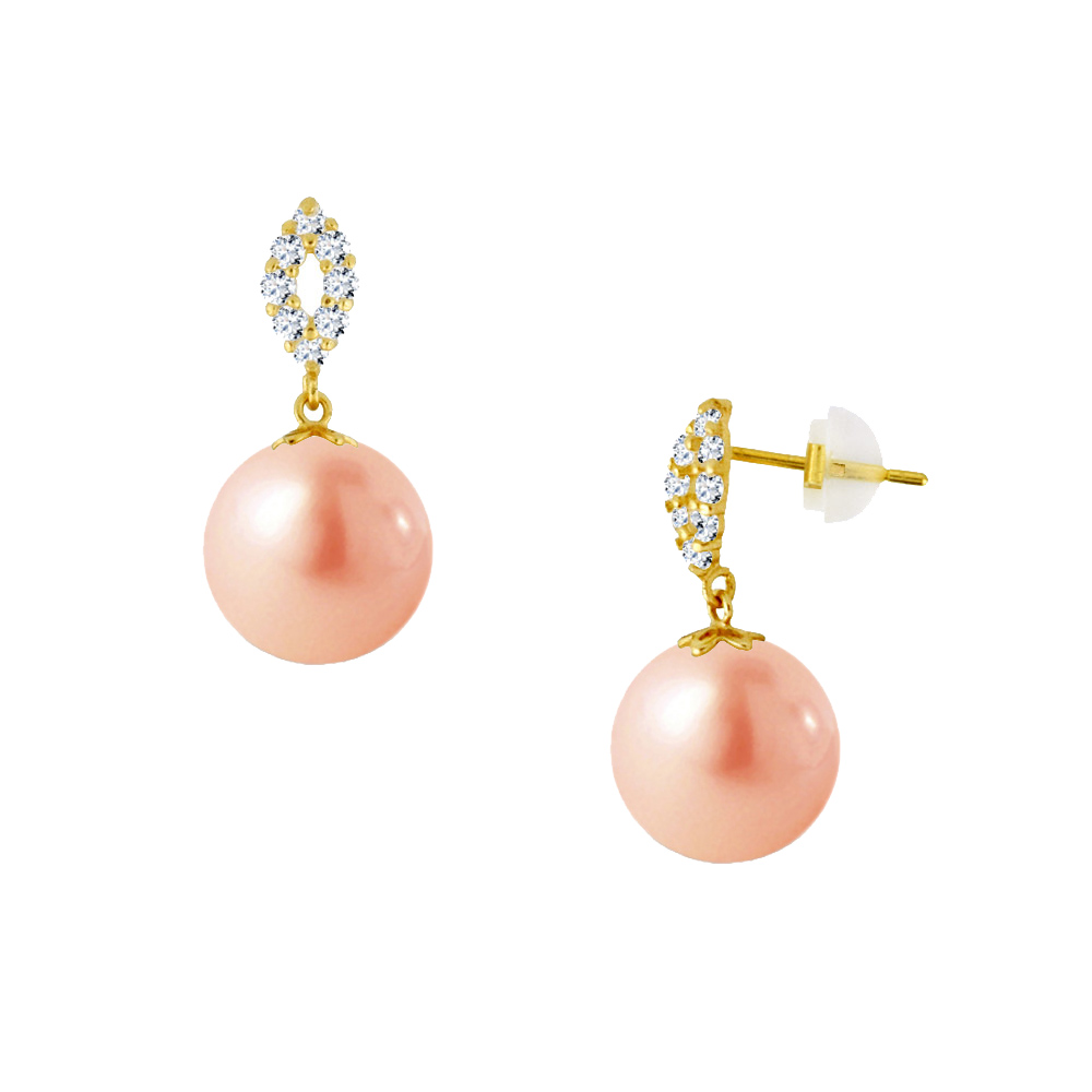 Σκουλαρίκια σε Κ14 χρυσή βάση με σομόν μαργαριτάρια και ζιργκόν - F124344S