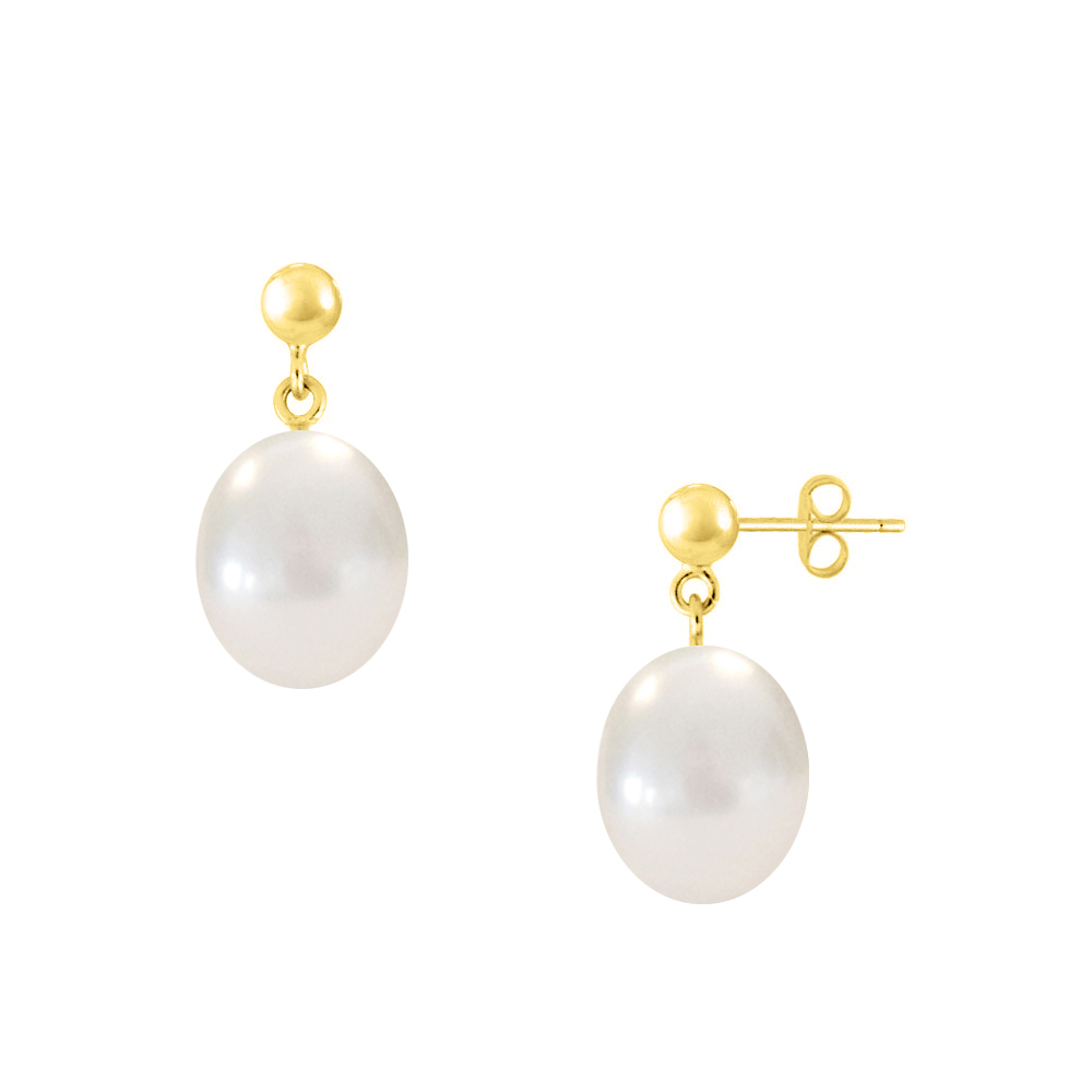 Σκουλαρίκια σε Κ14 χρυσή βάση με λευκό μαργαριτάρι - F124105