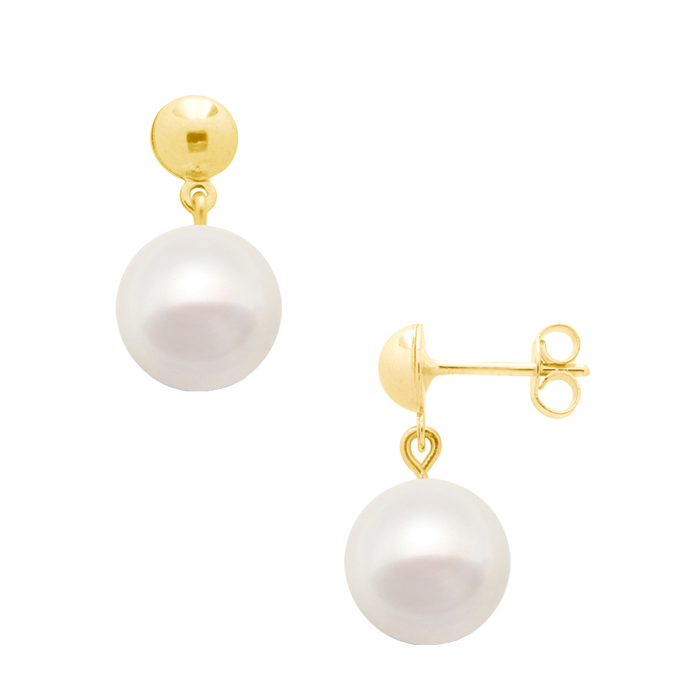 Σκουλαρίκια σε Κ14 χρυσή βάση και λευκά μαργαριτάρια - F124266