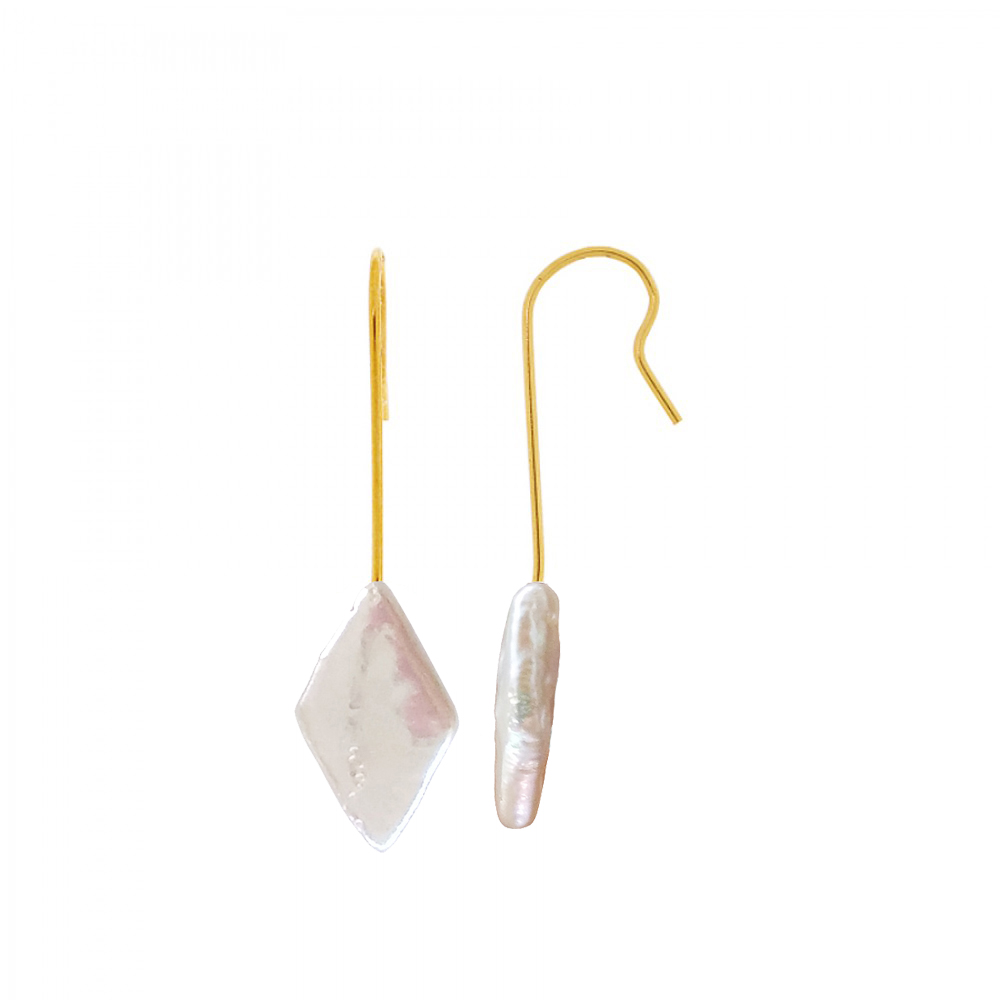 Σκουλαρίκια Κ14 χρυσά με Biwa λευκά μαργαριτάρια - G318811R