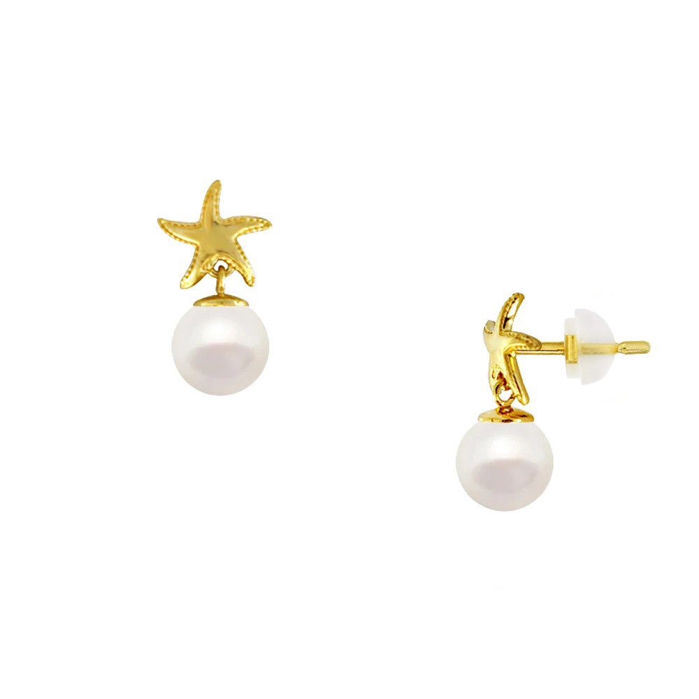 Σκουλαρίκια με λευκά μαργαριτάρια σε χρυσή βάση Κ14 - M124213