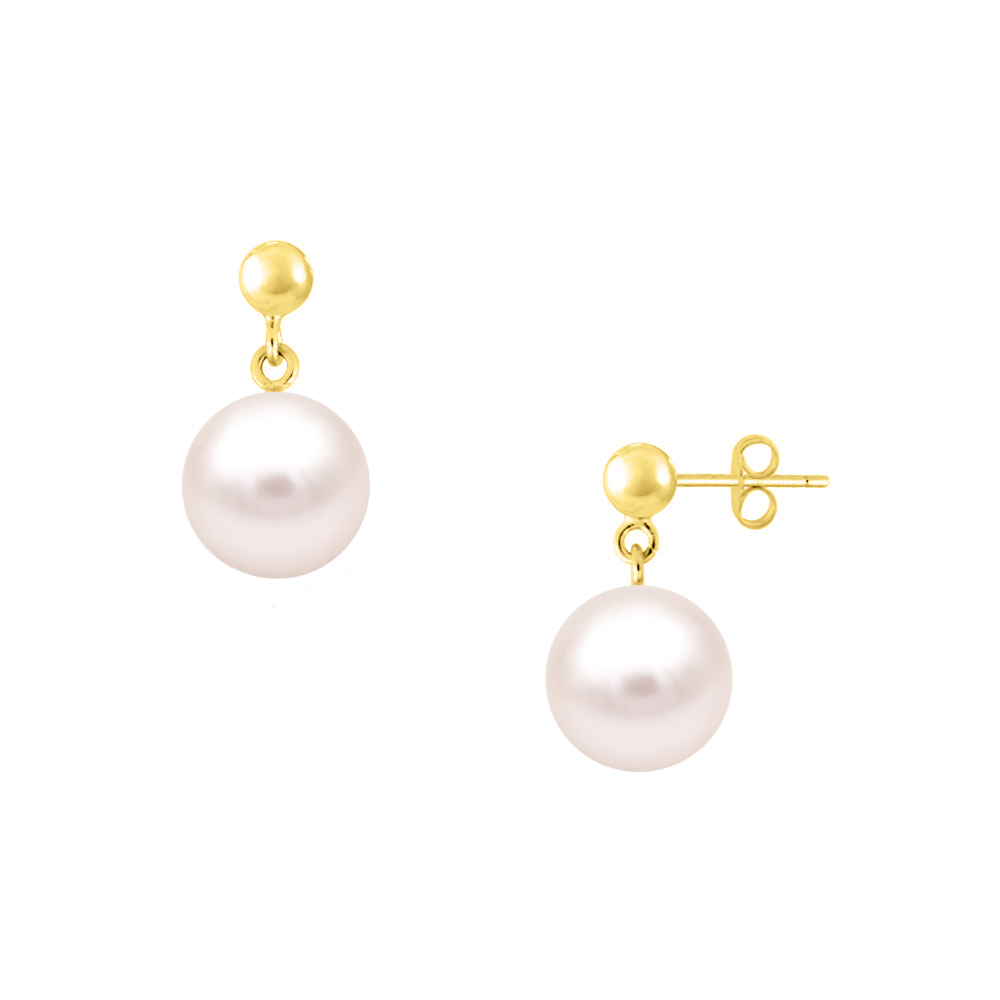 Σκουλαρίκια σε Κ14 χρυσή βάση με λευκά μαργαριτάρια - F124104W