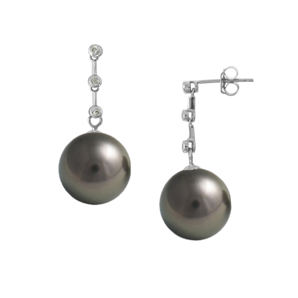 • Ένα φανταστικό ζευγάρι σκουλαρίκια με 2 εντυπωσιακά μαύρα μαργαριτάρια QTV Akoya Pearl άριστης ποιότητας διαμέτρου 10-10,5 χιλιοστών σε σχήμα Round (στρόγγυλο).
