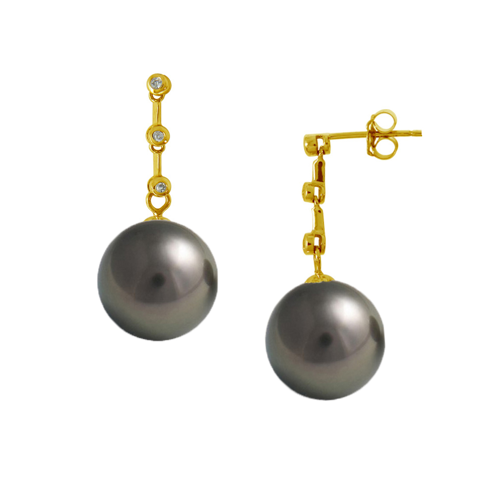 Σκουλαρίκια σε Κ18 χρυσή βάση με μαύρα μαργαριτάρια - G316670B