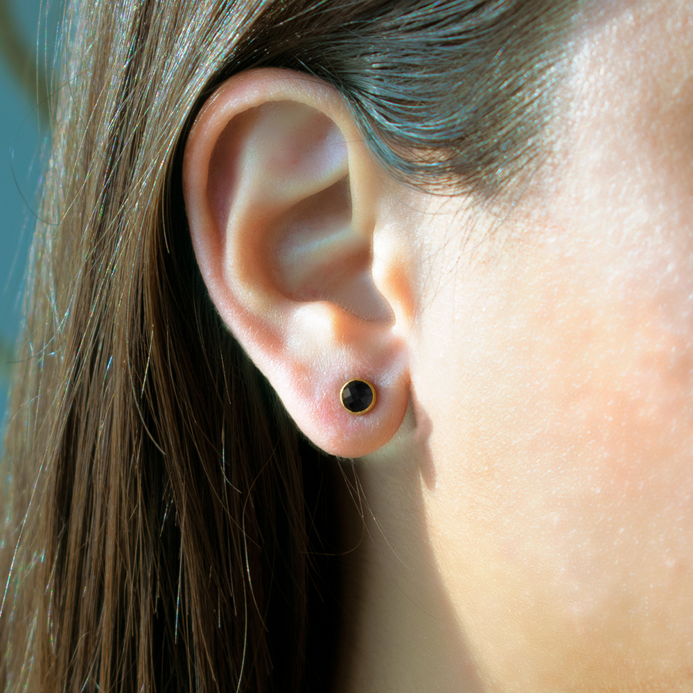 • Ένα φανταστικό ζευγάρι σκουλαρίκια με μαύρο  ζιργκόν διαμέτρου 5,5 χιλιοστών.