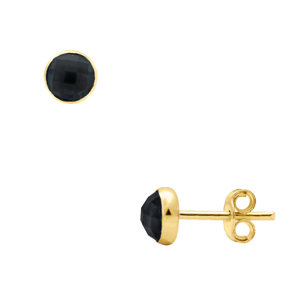 -7% Σκουλαρίκια σε Κ14 χρυσή βάση με μαύρο ζιργκόν - S124048