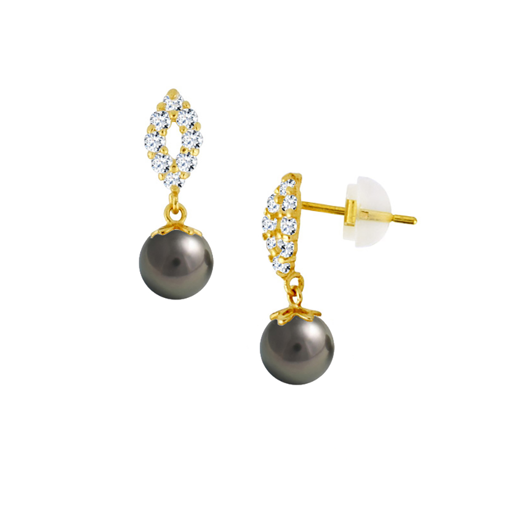 Σκουλαρίκια με μαύρα μαργαριτάρια και ζιργκόν σε χρυσή βάση Κ14 - M124218B