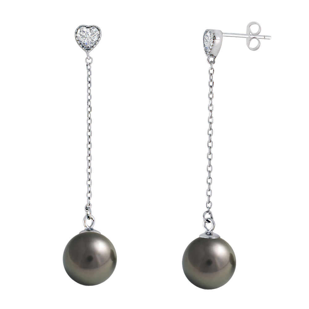 • Ένα υπέροχο ζευγάρι κρεμαστά σκουλαρίκια με μαύρα μαργαριτάρια QTV Akoya Pearl, άριστης ποιότητας διαμέτρου 7,5 x 8,0 χιλιοστών.