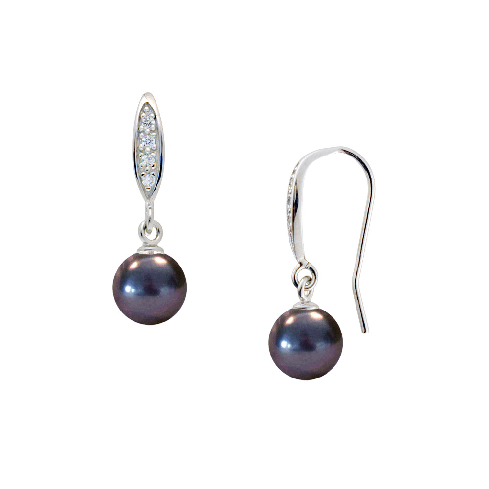 Σκουλαρίκια με μαύρα μαργαριτάρια σε ασημένια βάση 925 με ζιργκόν - M123686B