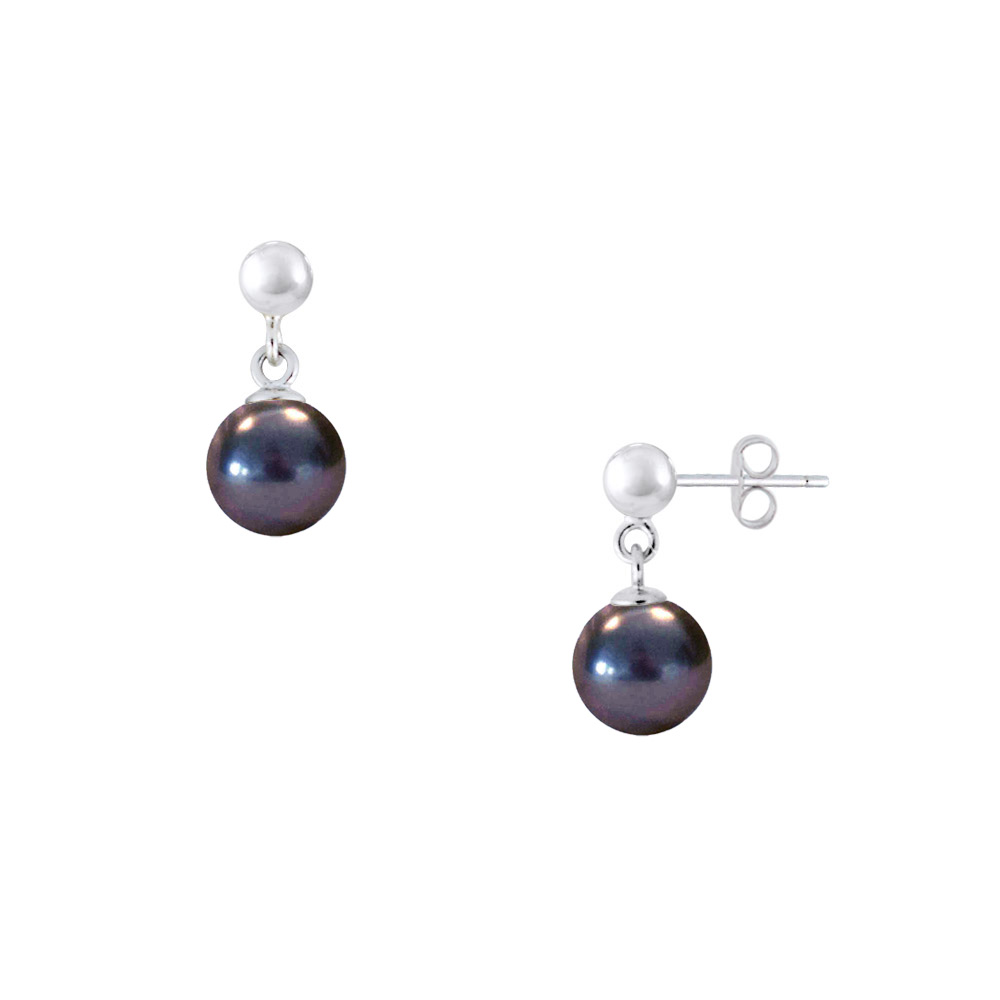 • Ένα υπέροχο ζευγάρι κρεμαστά σκουλαρίκια με μαύρα μαργαριτάρια QTV Akoya Pearl, διαμέτρου 7,5 - 8 χιλιοστών άριστης ποιότητας σε σχήμα Round (στρόγγυλο).