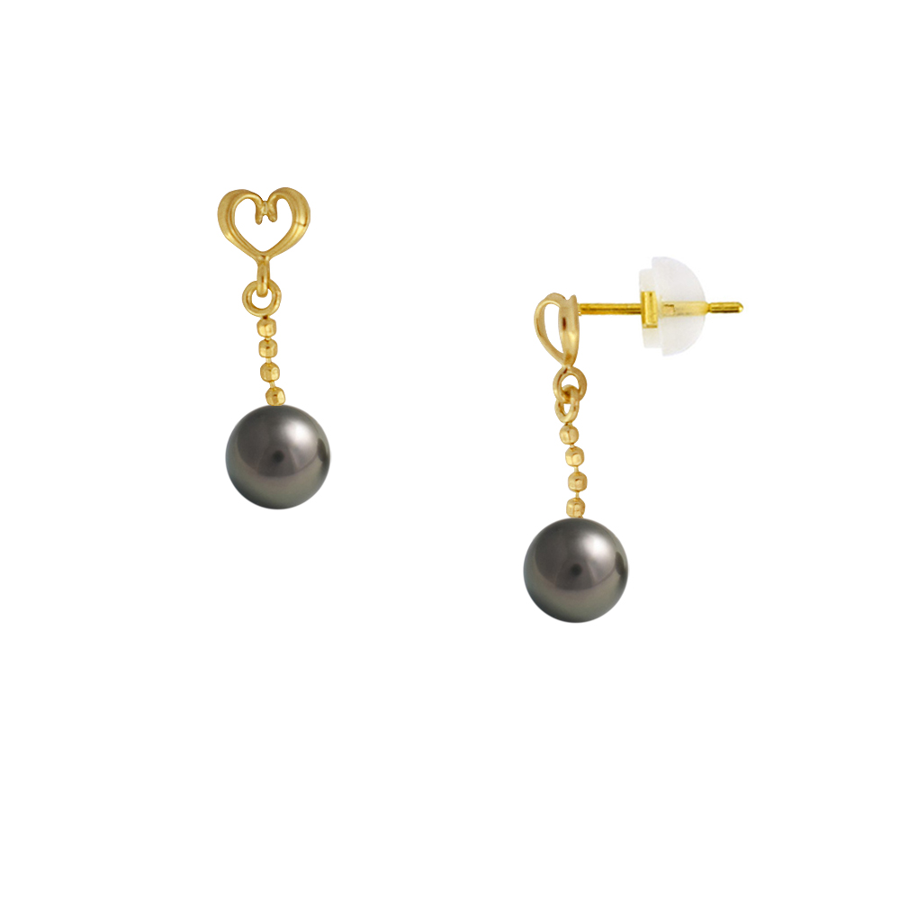 Σκουλαρίκια με μαύρα μαργαριτάρια σε χρυσή βάση Κ14 - M123825B