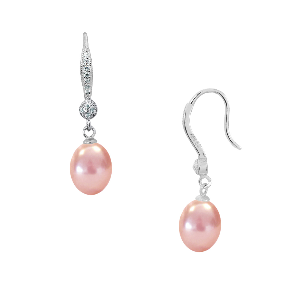 Σκουλαρίκια με σομόν μαργαριτάρια και ζιργκόν σε ασημένια βάση 925 - S124313S
