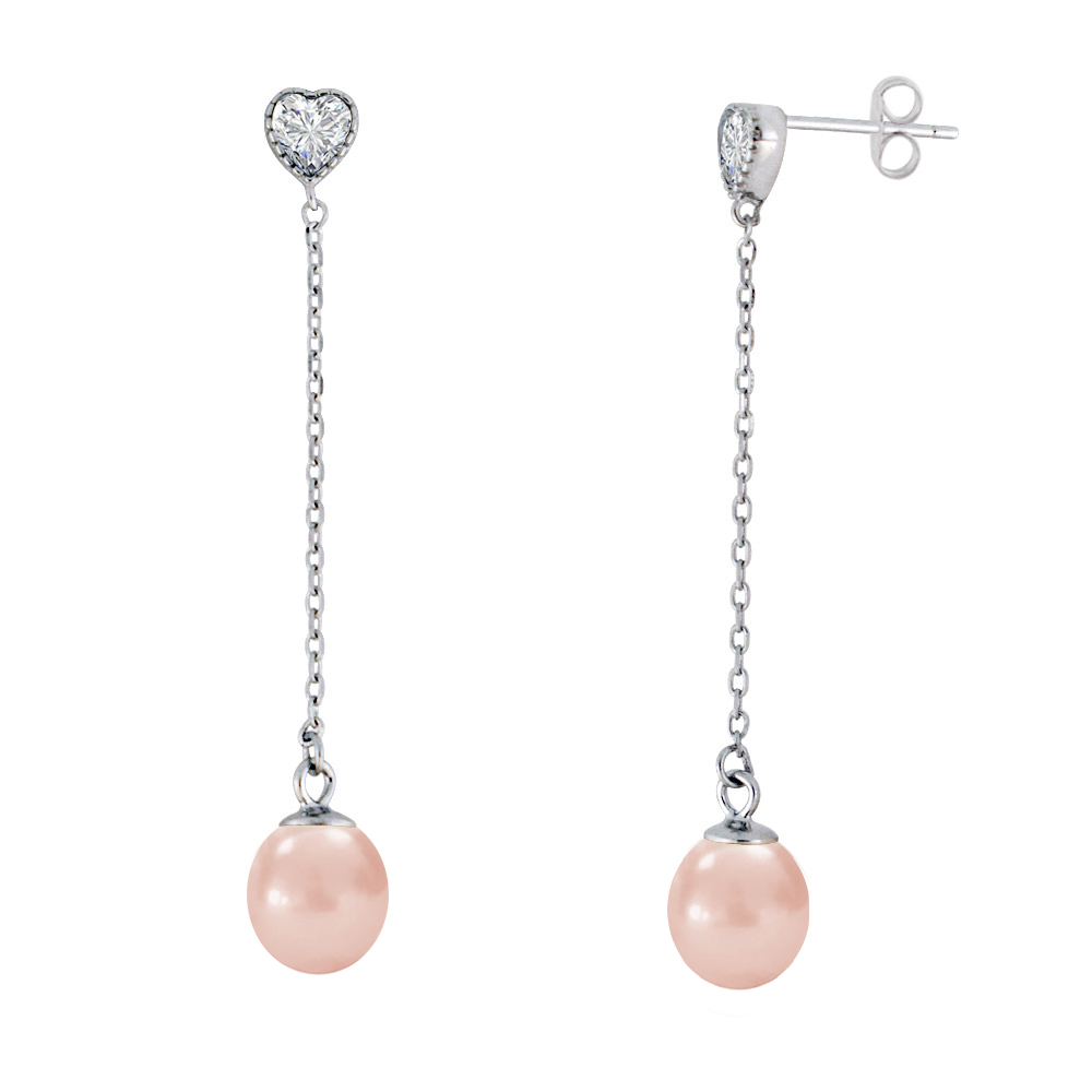 • Ένα υπέροχο ζευγάρι κρεμαστά σκουλαρίκια με σομόν μαργαριτάρια Fresh Water Pearl σε σχήμα Drop (σταγόνα), διαμέτρου 8.5X11 χιλιοστών.