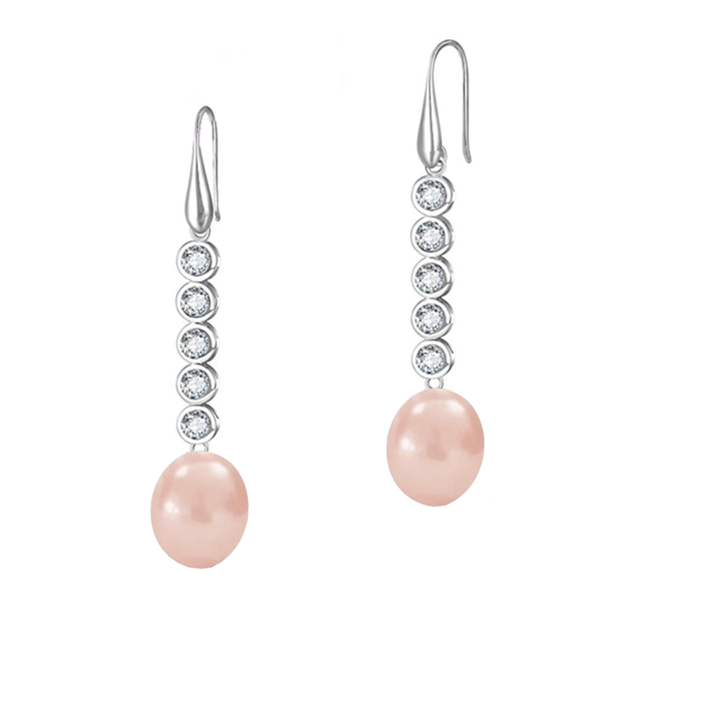 • Ένα υπέροχο ζευγάρι κρεμαστά σκουλαρίκια με σομόν μαργαριτάρια Fresh Water Pearl διαμέτρου 9 x 11 χιλιοστών σε σχήμα Long.