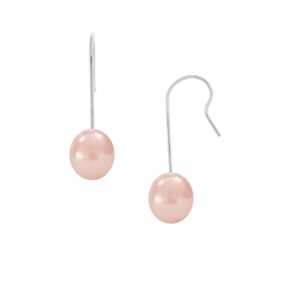 • Ένα υπέροχο ζευγάρι κρεμαστά σκουλαρίκια με σομόν μαργαριτάρια Fresh Water Pearl, άριστης ποιότητας σε σχήμα Drop (σταγόνα), διαμέτρου 7 x 9  χιλιοστών.