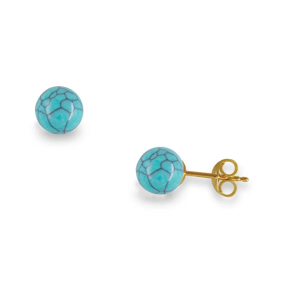 • Ένα υπέροχο ζευγάρι σκουλαρίκια με στρογγυλά τιρκουάζ διαμέτρου 8 χιλιοστών.