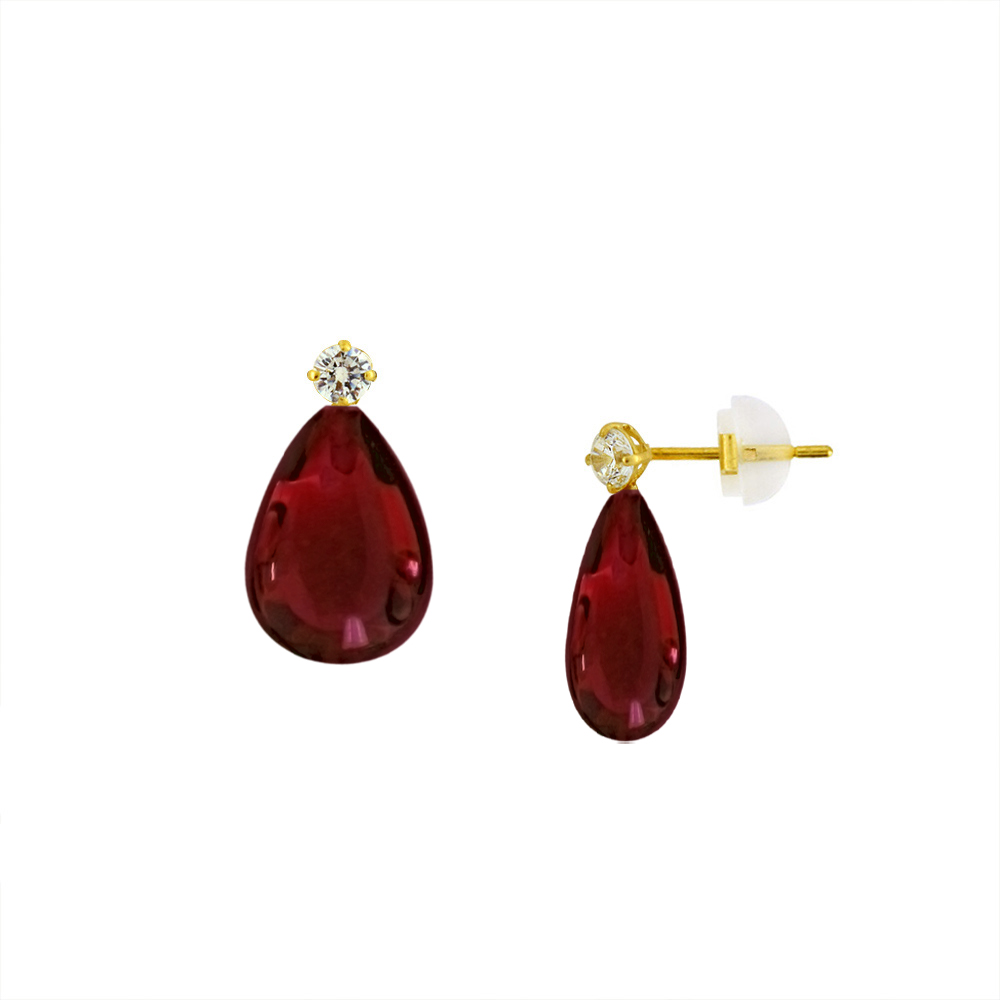 • Ένα φανταστικό ζευγάρι σκουλαρίκια με ημιπολύτιμους λίθους Garnet Cubic Zirconσε σχήμα Drop (σταγόνα), διαμέτρου 9 x 12,5 χιλιοστών.