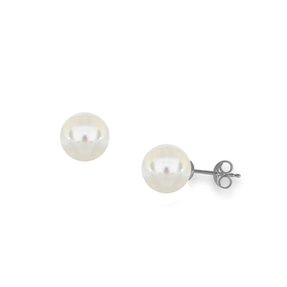 • Ένα υπέροχο ζευγάρι σκουλαρίκια με ολοστρόγγυλα λευκά Shell Pearl διαμέτρου 8,0 χιλιοστών.