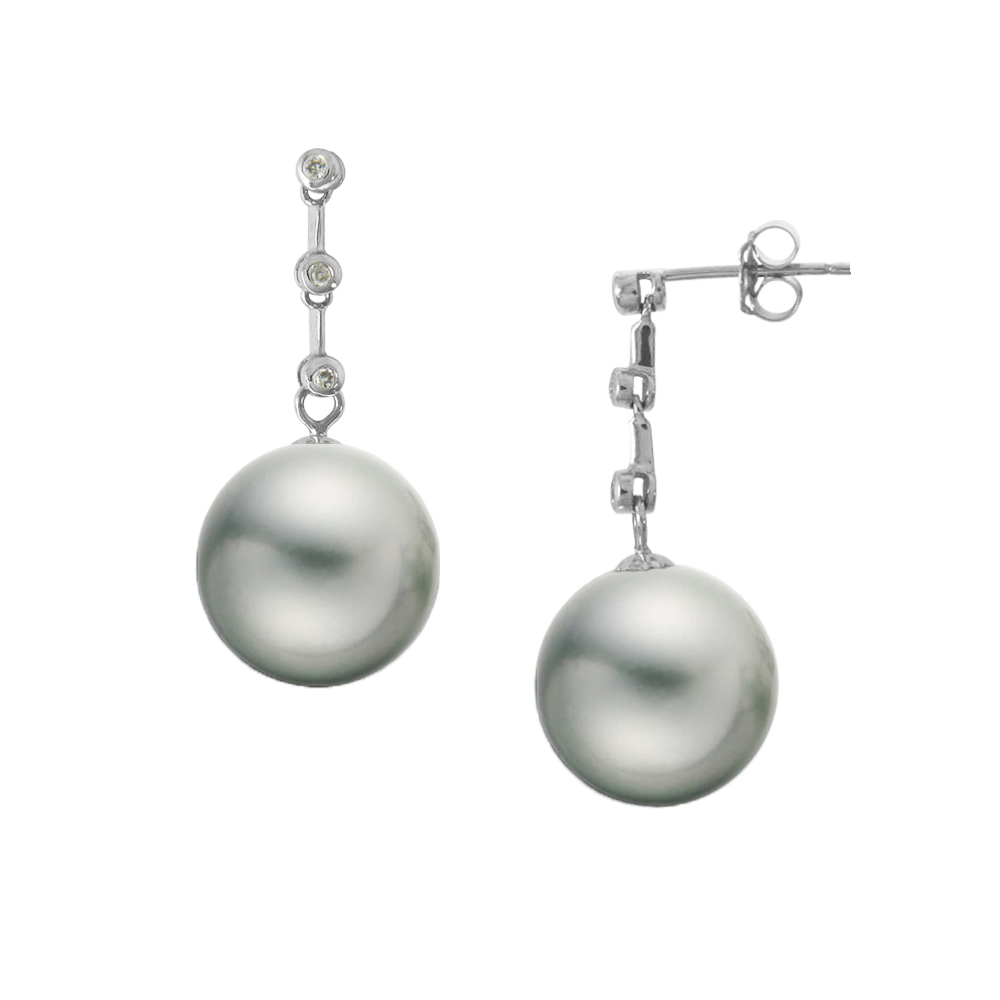 • Ένα φανταστικό ζευγάρι σκουλαρίκια με 2 εντυπωσιακά γκρι μαργαριτάρια QTV Akoya Pearl άριστης ποιότητας διαμέτρου 10-10,5 χιλιοστών σε σχήμα Round (στρόγγυλο).