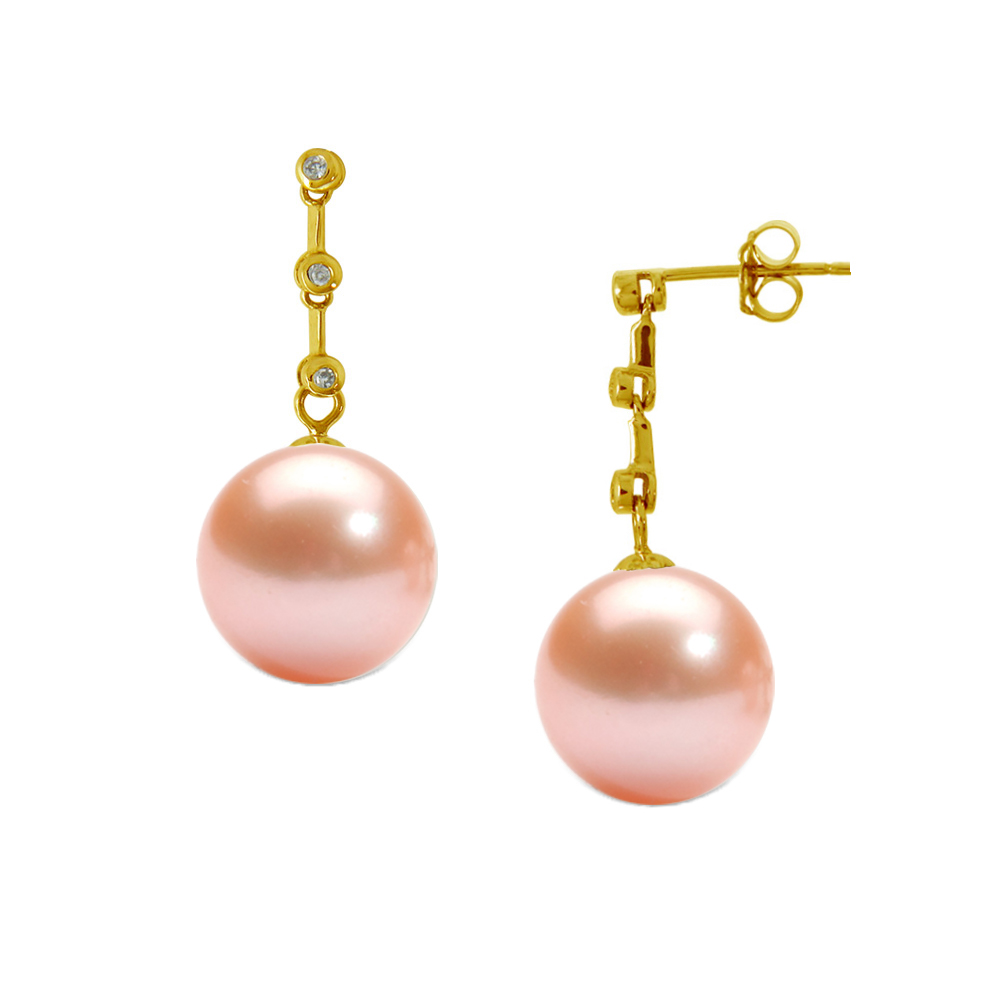 Σκουλαρίκια σε Κ18 χρυσή βάση με σομόν μαργαριτάρια - G316670S