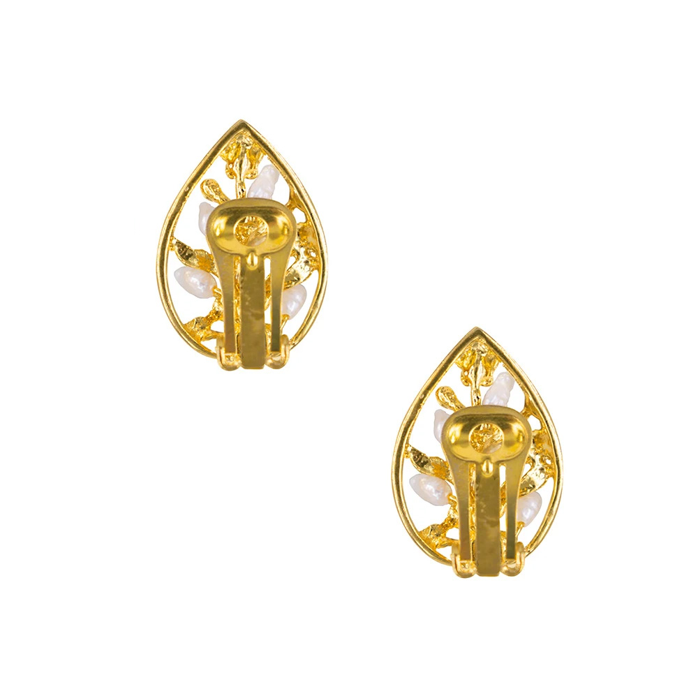 Σκουλαρίκια με λευκά μαργαριτάρια και βάση από ατσάλι με κλιπ - F126873
