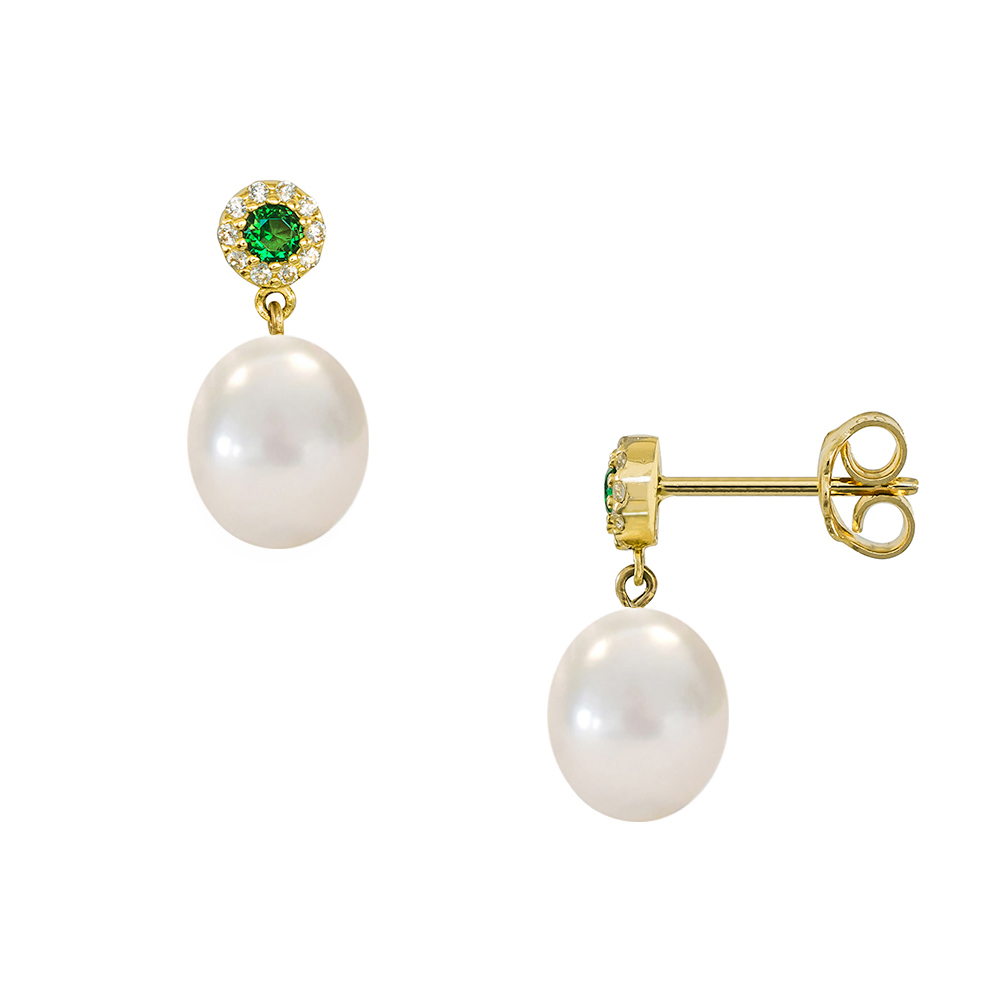 Σκουλαρίκια Κ14 χρυσά με μαργαριτάρι και ζιργκόν - F124285G
