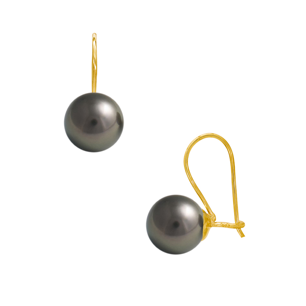 Σκουλαρίκια Κ14 χρυσά με μαύρα μαργαριτάρια - F124420B