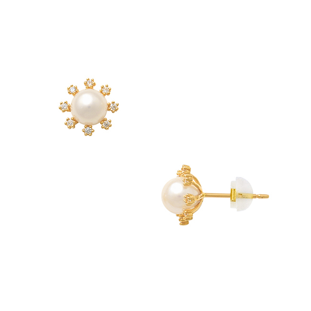 Σκουλαρίκια Κ14 χρυσά με λευκό μαργαριτάρι Q.T.V Akoya και ζιργκόν - F124527