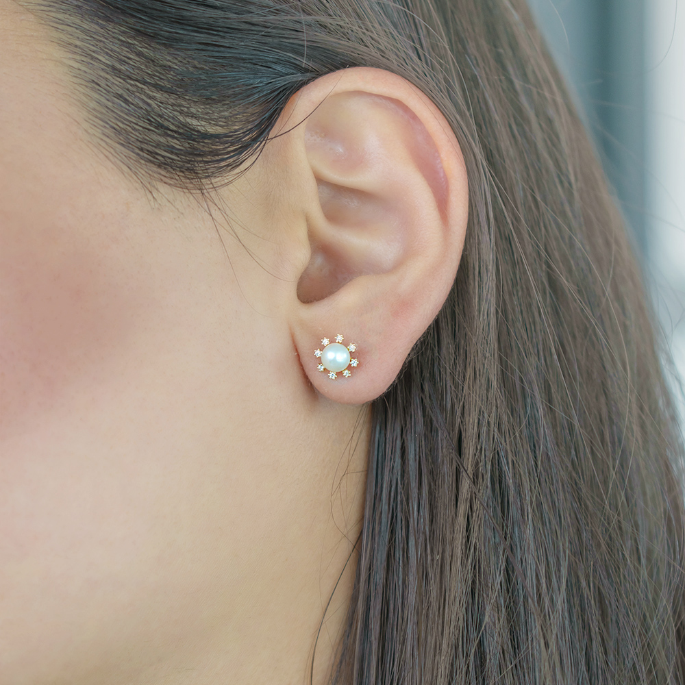 Η βάση του είναι χρυσή 14 καρατίων και είναι διακοσμημένη με 8 λαμπερά ζιργκόν, τα οποία αγκαλιάζουν αρμονικά τα μαργαριτάρια.