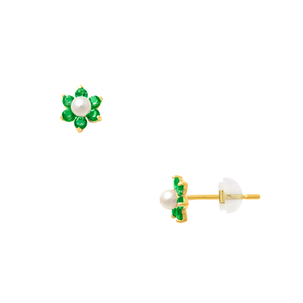 -4% Σκουλαρίκια Κ14 χρυσά με λευκό μαργαριτάρι και σμαράγδια - F124534E