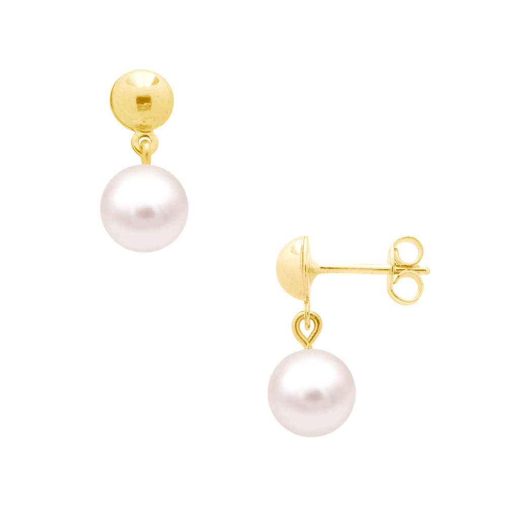 Σκουλαρίκια σε Κ14 χρυσή βάση και λευκά μαργαριτάρια - F124106W