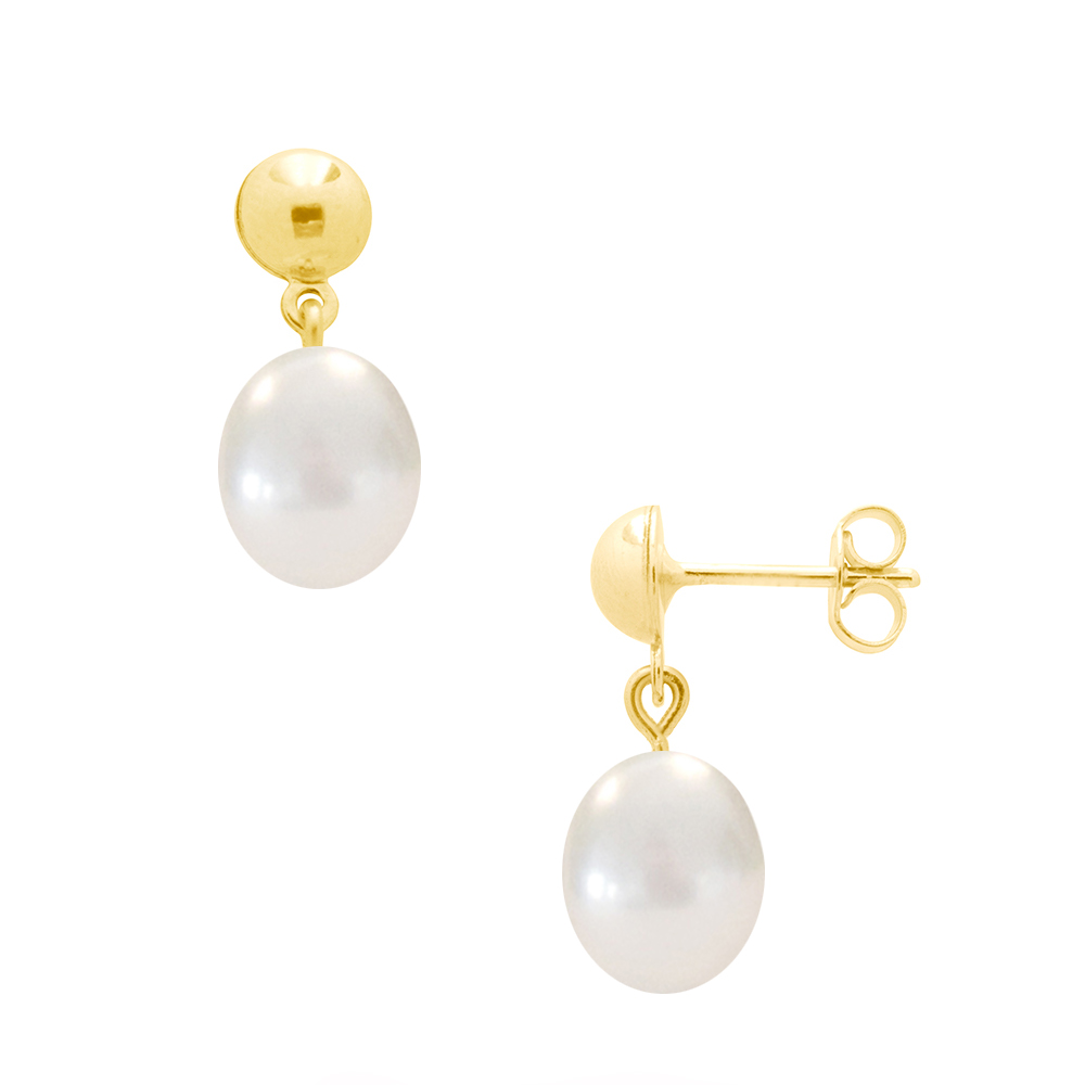 Σκουλαρίκια σε Κ14 χρυσή βάση με λευκά μαργαριτάρια - F124107