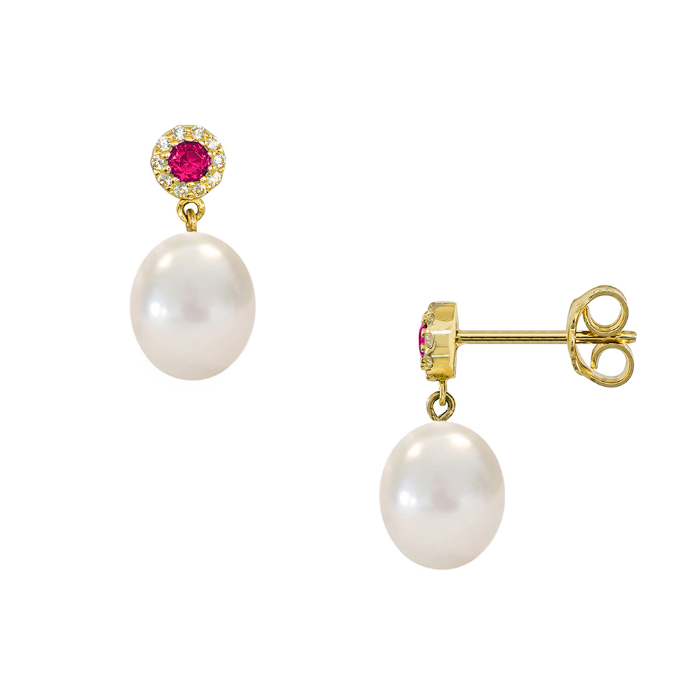 Σκουλαρίκια Κ14 χρυσά με μαργαριτάρι και ζιργκόν - F124285R