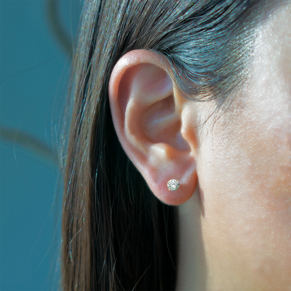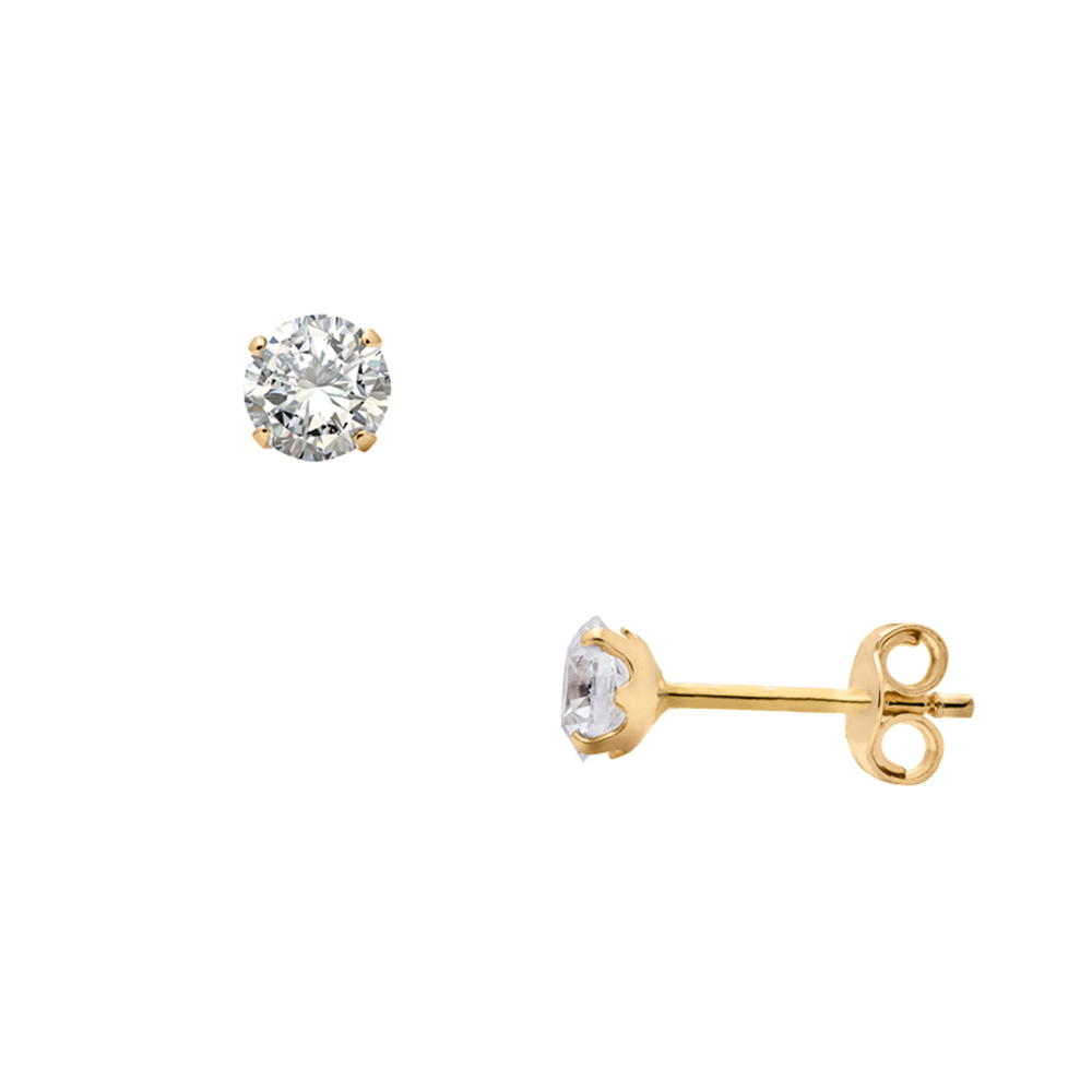 • Ένα εντυπωσιακό μονόπετρο ζευγάρι σκουλαρίκια με  ζιργκόν διαμέτρου 4,5 χιλιοστών.