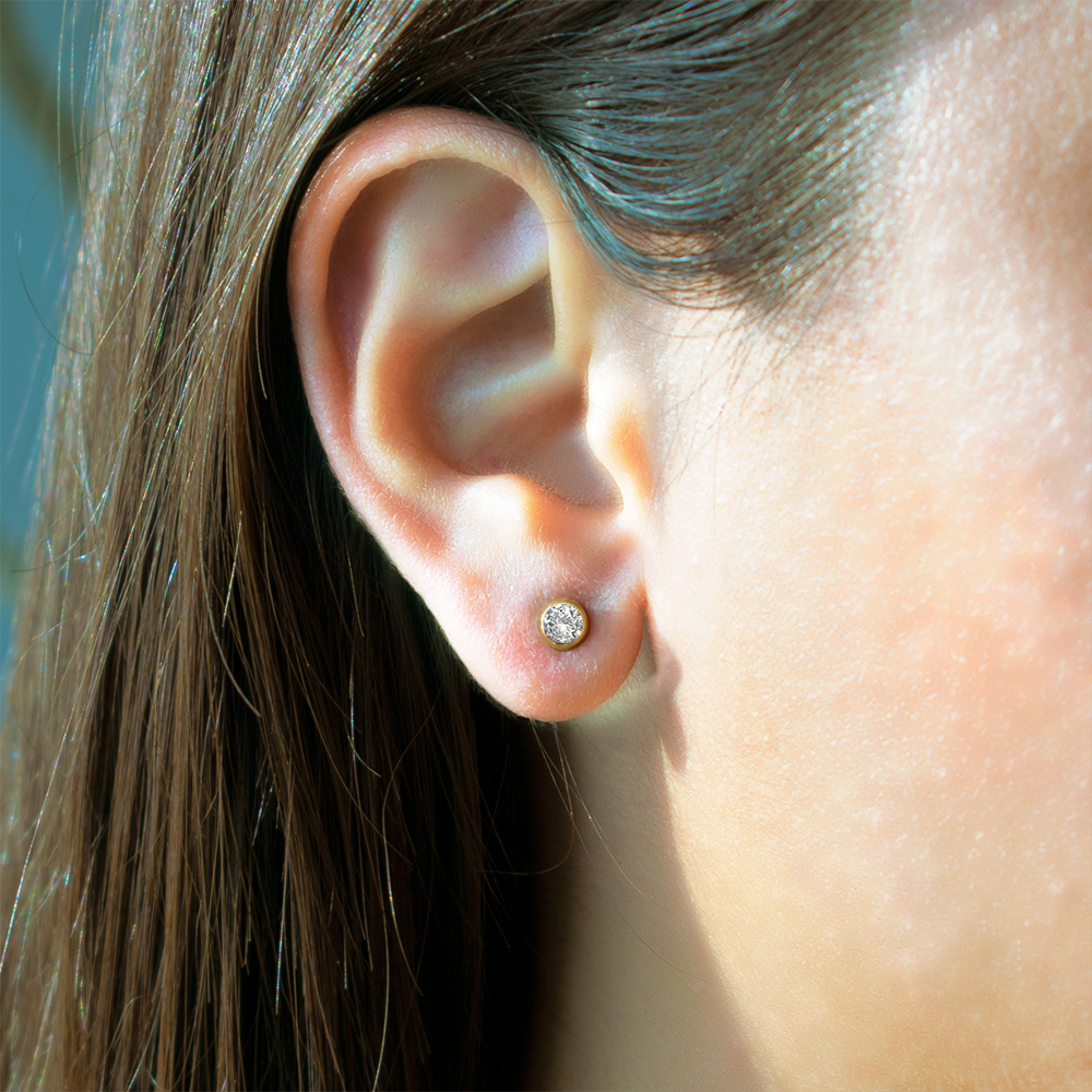 • Ένα υπέροχο μονόπετρο ζευγάρι σκουλαρίκια με ζιργκόν διαμέτρου 4,5 χιλιοστών.