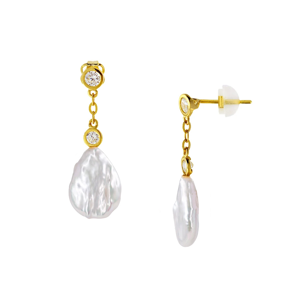Σκουλαρίκια Κ14 χρυσά με Biwa μαργαριτάρια και ζιργκόν - S123978B