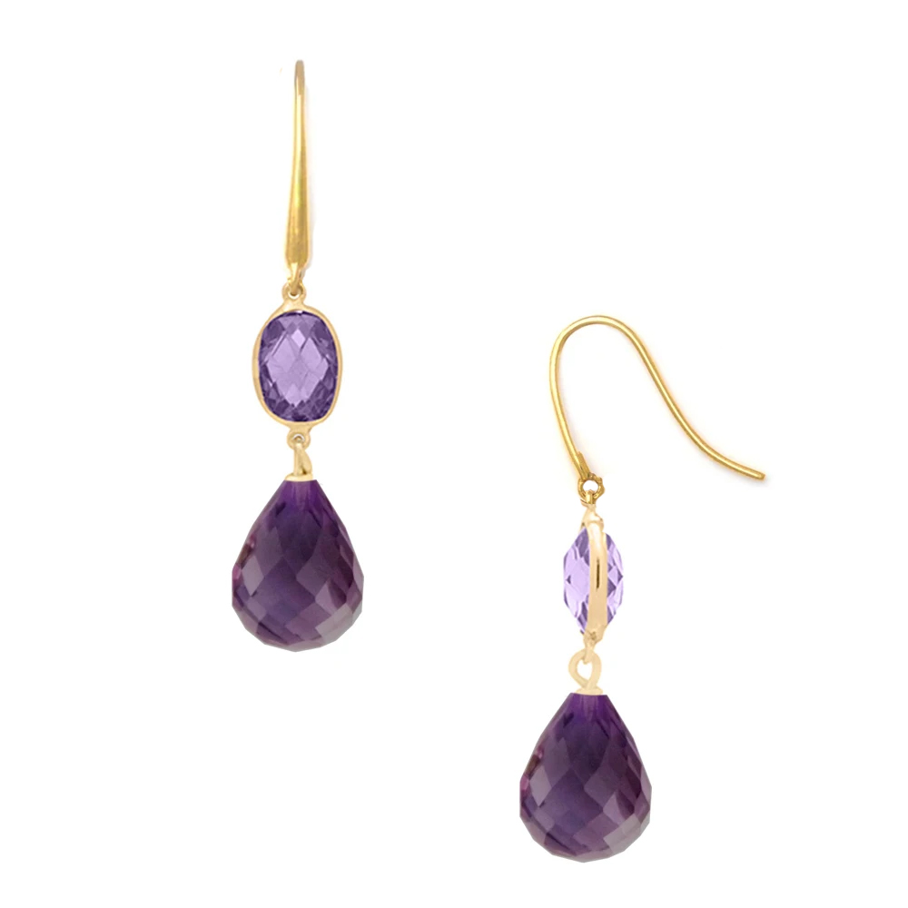 Η κρεμαστή χρυσή βάση 14 καρατιών και το Cubic Zircon ενώνονται με έναν λαμπερό ημιπολύτιμο λίθο Amethyst CZ, ο οποίος είναι σε χρυσό καστόνι 14 καρατιών διαμέτρου 5 x 7 χιλιοστών, προσφέροντας κίνηση στο σκουλαρίκι.