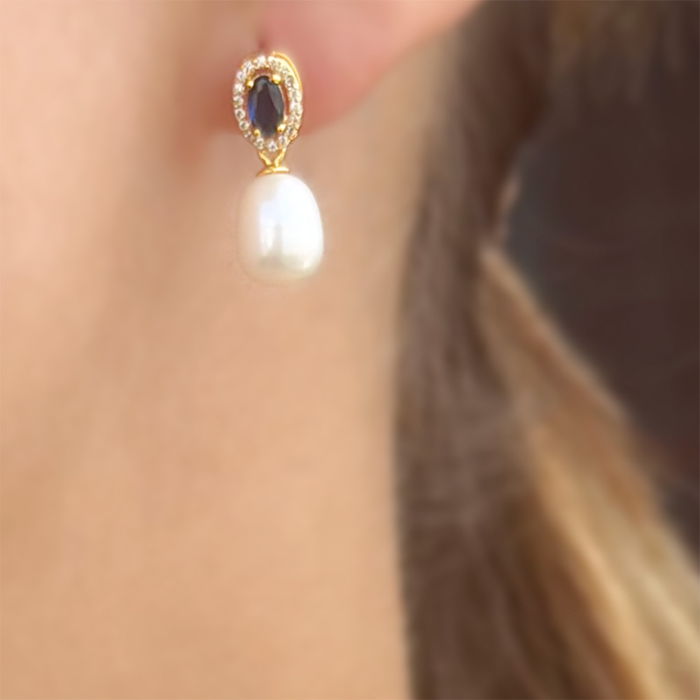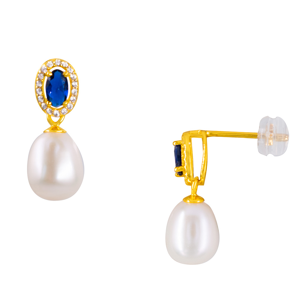 • Ένα υπέροχο ζευγάρι κρεμαστά σκουλαρίκια με λευκά μαργαριτάρια Fresh Water Pearl διαμέτρου 8x10 χιλιοστών.