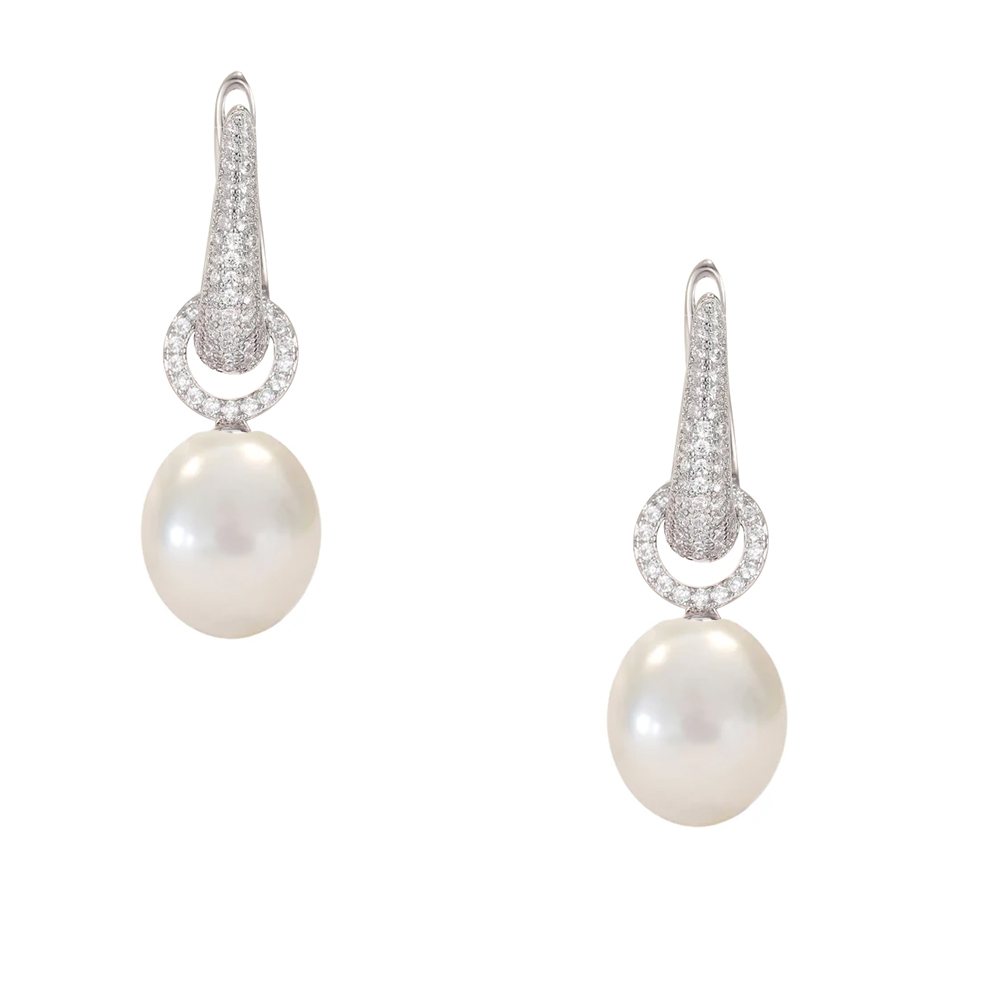 Σκουλαρίκια με λευκά μαργαριτάρια και ζιργκόν σε ασημένια βάση 925 - F124314L